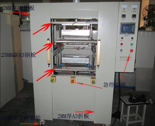 4、上移动工作台板\下固定工作台板采用45#钢,表面处理,表面光洁;具有不变形,使用寿命长.设计有标准模具工装接口,便于人工换模快速定位,并且给客户以后其他产品预留升级空间;