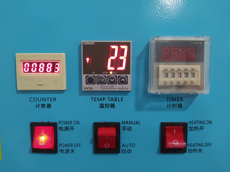 桌面式热熔铆点焊接机温控器可调温度范围:室温-350℃,温度误差为5℃,控制精度高;带计算器,有效准确记录产品加工数量;焊接时间可调,调节范围0.01s-30min。