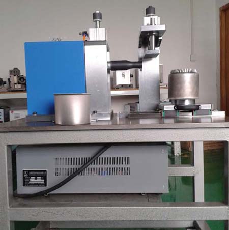 铝片焊接机通过高频机械振动对铜铝金属件进行焊接。在一定压力下固定下工件,上工件以20kHz的频率在其表面进行循环往复的振动,从而达到焊接的效果。