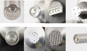 配套手持超声波焊机和自动化超声波设备,常见频率包括28k/30k/35khz,形状各异,网纹齿/铆点/穿刺焊头/切割刀等,材质有镁铝合金、钛合金和钢质。
