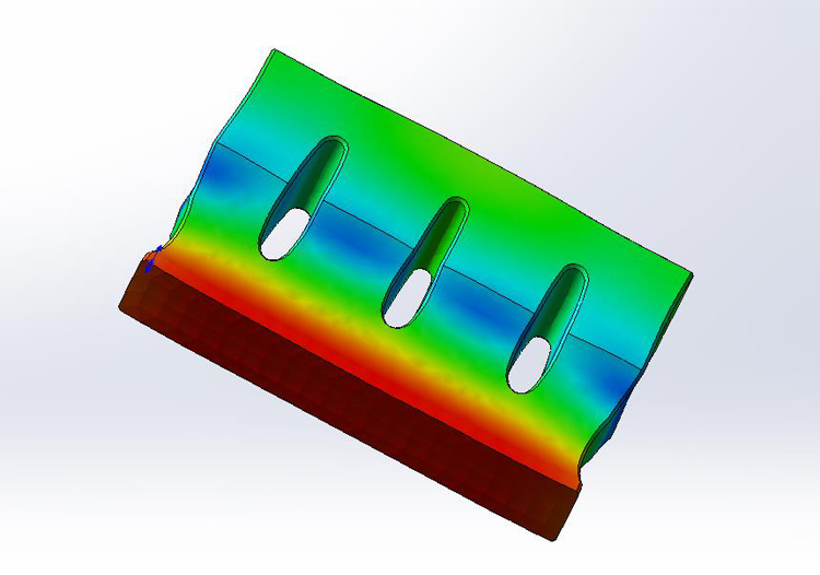 超声波模具制作前,要用软件专门频率模拟测试,保证超声波模具的发力跟频率效果,下图是15khz超声波模具平模,尺寸280*45mm,超声波模具频率发力效果(见下图)。