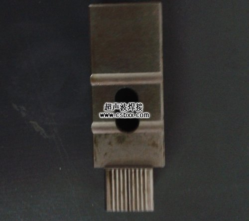 超声波线束焊接机焊头又称为超声波模具四件套,分为:超声波焊头、上滑块、左推进滑块、右推进滑块。使用的材质硬度较好,密度相对均匀,为保证超声波的顺利传导,采用特殊的处理工艺、精确的结构尺寸。工作面花纹根据产品要求严格计算,保证焊接质量。